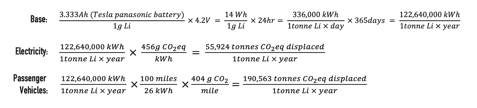 If an electric vehicle was charged using electricity generated by conventional coal or natural gas sources, as opposed to renewable energy sources, one extra ton of lithium utilized in the energy ecosystem would still displace 134,000 tons of CO2 on an annual basis. On top of this, if the EV was charged by fossil-fuel generated power for its entire lifetime, that upstream emission would still produce significantly less carbon emissions that an ICEV, not including the calculations of gasoline production.